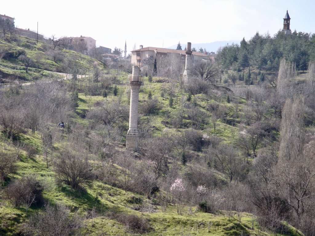 The walk to the shrine passes through the gorge with the shattered minarets rising from its sides as silent reminders of the fighting between Greeks and Turks during the Turkish War of Independence (recent “restoration” makes no sense in this context).