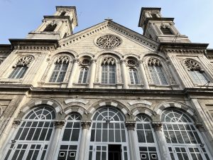 Close by is the huge St Anthony’s Cathedral (St Antoine’s), by far the most conspicuous of the many churches in this area. With its grand brick gateway and annexe builidngs and its High Gothic interior, it’s a little piece of France mixed with Italy and still offers regular services today. In front of it stands a statue of Pope John XXIII (Angelo Guiseppe Roncalli, 1881-1963), a Turkish speaker who, from 1935 to 1944, served as the Pope’s ambassador to Turkey and as a priest at the church. Because of the work he did in helping Jews escape the Nazis “the Turkish Pope” was dubbed a “Righteous Gentile”. Recently a very beautiful sculpture of a distorted Crucifixion was also placed in front of the church.