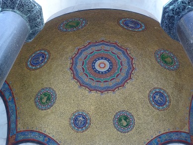 Mosaic-covered interior of German Fountain with emblems of Sultan Abdülhamid II and Kaiser Wilhelm II