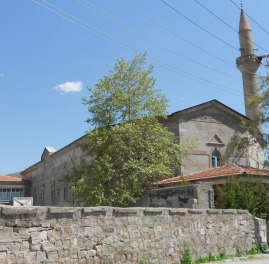 Keep on going and you will see on the right what was once the Armenian church of St Mary and has been since 1978 the Asağı Everek Cami (Lower Everek Mosque). It’s an enormous building with a curved portico and some elaborate non-figurative carvings on the facade and around the door. Inside it’s now a cavernous empty space with a mihrab inserted into what used to be the east wall. Frescoes that once covered the walls were painted over when the church was turned into a mosque.