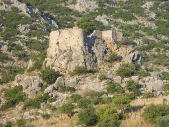 Such a lovely spot was well-defended in the past. The remains of a small castle perch on a tiny fairy-tale islet in the middle of the bay while the ruins of a rather sturdier fortress bestride the mountain on the inland side of the main road.