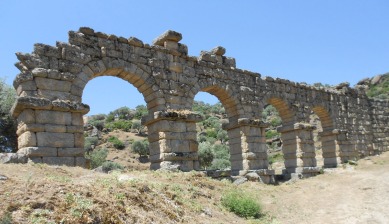 Assuming that you start at the top of the site, the first large structure you will encounter is an aqueduct with four arches near to part of the walls that ringed the acropolis and the small houses inside it. The views from here are magnificent, well worth coming up for even if you don’t usually care much for ruins.