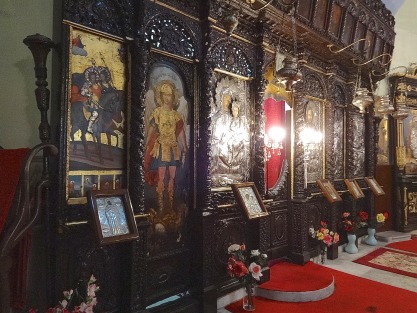 On the waterside of the Walls you will find a string of restored brick mansions with, behind them, the appallingly restored Church of Hagios Ioaanis Prodromos (St John the Baptist) built in 1830 on a site that had probably been occupied by a church since the 14th century and that was part of a metochion (embassy church) associated with the monastic church of St Catherine’s in Sinai, Egypt. Two of the battered buildings were once a library and guesthouse belonging to the church while the one facing the main road was the private mansion of a 17th-century politician named Panagotaki Nikosi.