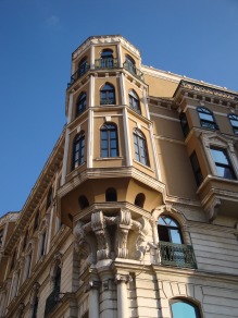 A little further down the road is the Italian Cultural Centre at which point the road veers sharply to the right in front of the brashly modern, high-rise Marmara Pera hotel. It’s round this bend that you’ll find the Pera Palace, the hotel in which Agatha Christie penned parts of the Murder on the Orient Express and which provided the setting more recently for Barbara Nadel’s Deadline.