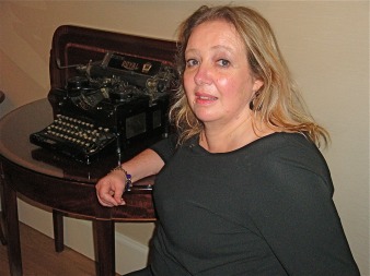 British crime writer Barbara Nadel with British crime writer Agatha Christie’s typewriter in R411 of Pera Palace HotelAlong Meşrutiyet Caddesi