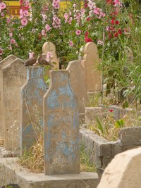 Somehow when you find your way to somewhere off the beaten track you always assume that its historical monuments will be readily accessible. In reality, though, they’re probably even more likely to be kept locked up for lack of visitors, and so it was in Cizre where I hung about hopefully and questioned everyone who passed by without managing to find out when the imam would come and unlock the doors. Disappointed, I wandered up the road and stumbled upon the lovely local cemetery, a rambling wild-garden of a place full of flowering hollyhocks in reds and purples that towered over the ramshackle graves. Such a pretty place had inevitably attracted its quota of picnickers for whom the arrival of a stray yabancı was a source of great amazement. Within minutes someone was rushing over with a glass of çay in their hand.