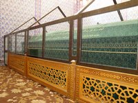 This time I took the side gate out and as I was wandering along the road a young man appeared and attached himself to me. Let’s call him Ahmet. He must have been about twenty, bored, with no work and not much prospect of it either despite mutterings about waiting in restaurants near Alanya. We exchanged scene-setting pleasantries and I explained about wanting to see inside the Ulu Cami, but he was too young and probably too secular to know where the key might be found. He was, however, very keen to show me what he regarded as the real gem of his home town which was the tomb of the Prophet Nuh (Noah), a short walk away through the back streets. From my point of view this shrine was more of a curiosity than a beauty. Noah was entombed in a ludicrously elongated tomb surrounded by a wooden fence but inside a modern space adorned with cheap-looking blue tiles that clashed with the green drape over the sarcophagus. The shrine was plonked down in the middle of a naked square with only a modern mosque to keep it company (apparently there was once a church on the site), and this being the far east of Turkey in mentality as well as geography men and women were expected to enter the shrine using separate entrances.