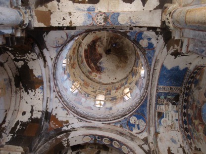 A little further round and down in a dip you will come to one of Ani’s most magnificent sights, the frescoed Church of St Gregory the Illuminator, known as the Resimli Kilise (Painted Church) in Turkish. It was paid for by Tigran Honentz, a local nobleman, in 1215 and the entire surface of the interior and the dome is lavishly painted with images of Bible stories and events from Armenian church history.