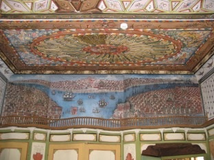 What do we know about the man behind the house? Well, Şerif Aliağa was a merchant and a local bigwig (or derebey) who ran the show in late 18th-century Birgi. Aliağa married twice, once to a woman from İstanbul and once to one from İzmir. To save them from feeling homesick in their back-of-beyond new home, Aliağa supposedly commissioned pictures of their hometowns to grace the walls of the top-floor lounges. It’s a pretty story. Unfortunately the presence in the paintings of buildings like the Sarıkışla (Yellow Barracks) in İzmir suggest that they were actually painted after 1826.