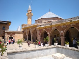 Midway between Kırşehir and Gülşehir on the outskirts of Cappadocia, Hacıbektaş is home to the shrine of Hacı Bektaş Veli, a 13th-century Sufi thinker, originally from Khorasan in Iran, who arrived in what was then the village of Sulucakarahöyük some time between 1270 and 1280. Here he developed a philosophy emphasising the importance of science and reason, and permitting women an equal part in daily life. Images of Veli usually show him embracing a deer and a lion, an allegorical rendering of his teachings about peace and tolerance (other images show him with a pigeon, the guise in which he is said to have flown to Anatolia).