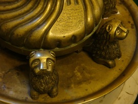 On the wall hang some fine examples of the sort of calligraphy that elevates writing into pictures; in one particularly fine example a human face has been created out of the words for “Ya Allah, Mohammed, Ali”. The finest item on display is a 40-branched candlestick which was used in Bektaşı ceremonies.