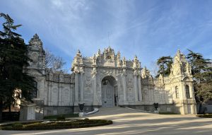 Today’s visitors approach not from the main water-facing entrance as the sultan would have done but from the side entrance into the Selamlık or administrative part of the palace. They do so via the Administrative Gate and across landscaped gardens which contain several sculptures of lions, and lionesses and their cubs which were commissioned after Sultan Abdülaziz’s train trip to Europe in 1864. On the roadside of the garden stands the grand curved Salutation Gate which is always visible as you sit in traffic jams on the road outside.