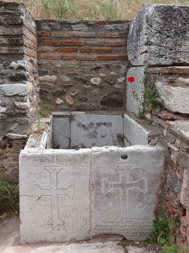 Today as you enter the main site along a stretch of Roman road you pass the slight remains of a series of shops in an area that has been described as a bazaar – great innovators, the Lydians are thought to have been the first people to set up permanent shops as opposed to market stalls. They would probably have been combined shop-houses since many of the items found inside them suggest a domestic purpose.