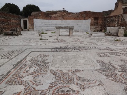 Sardis appears to have had a sizeable Jewish population. The shop-houses once backed onto a 3rd-century synagogue whose magnificent mosaic floor still survives (and now has a roof for its protection). One of the shops appears to have been owned by a man called Jacob.